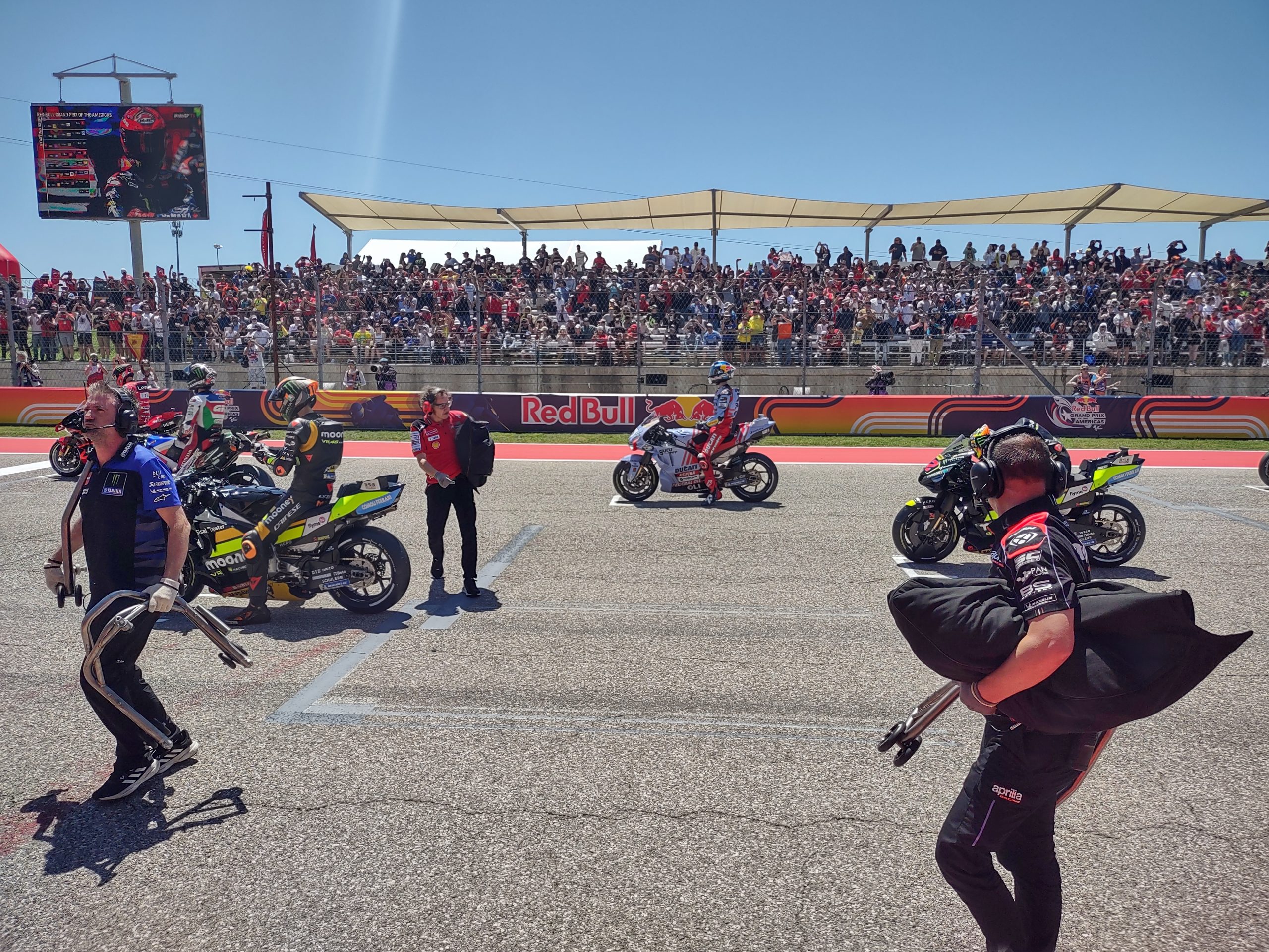The “Big Kids” getting ready to Rock N’ Roll right before Sunday’s MotoGP race in Austin, Texas. View from the other side of Pit Lane wall.
